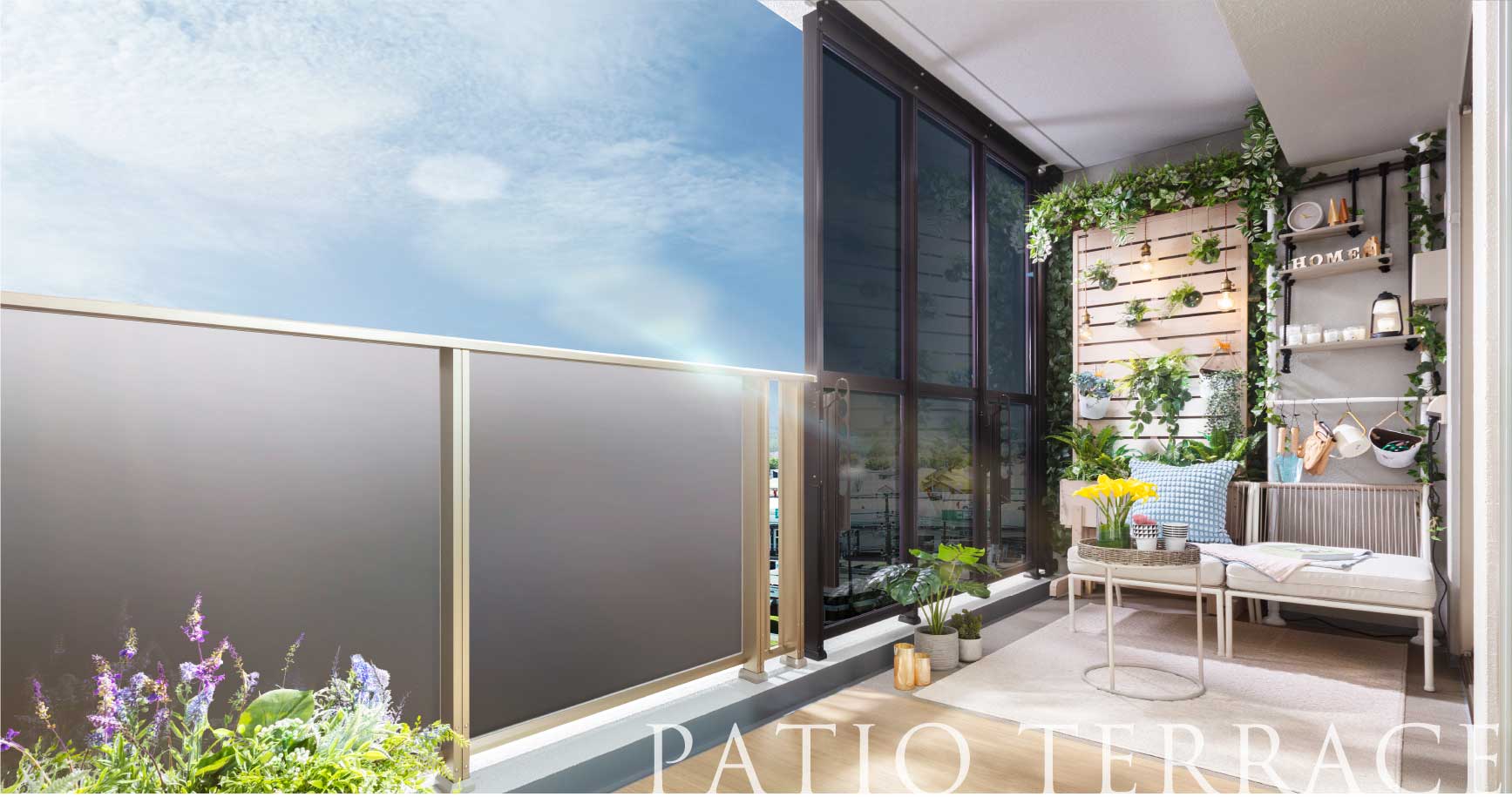 室内と屋外をつなぐパティオテラスは、自然の恵みをふんだんに感じるとともに室内の心地よさを同時に味わえます。この開放感あふれる空間には、暮らしを豊かに彩る多彩な使い方が広がります。