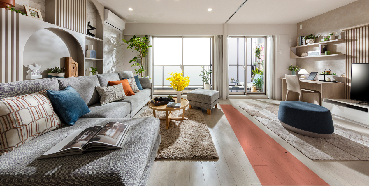 明るく開放感に満ちているので、リビングとの連動によってさらに寛ぎが広がります。