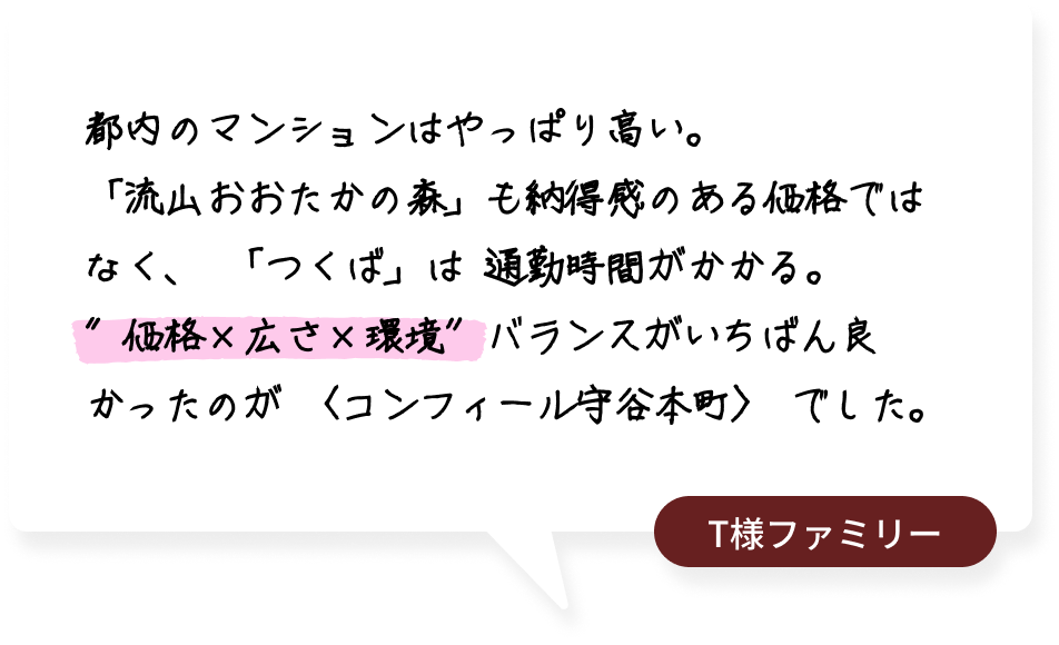 “価格×広さ×環境”バランスがいちばん良かったのが〈コンフィール守谷本町〉でした。