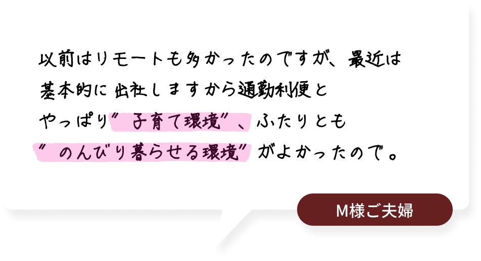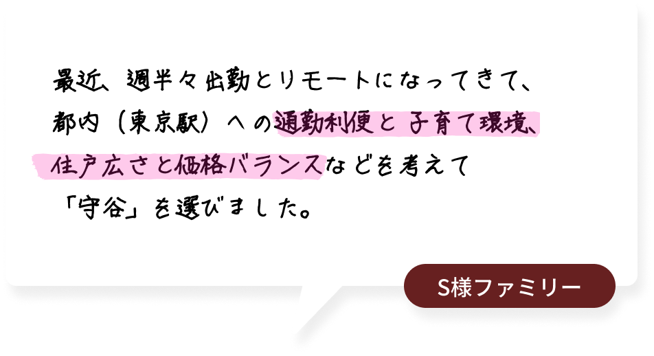 初めてのマイホームの条件は、都心への通勤利便と子育て環境。