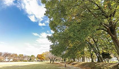 たくさんある公園、歩車分離された街並み、学校の校庭も広く青空の下、