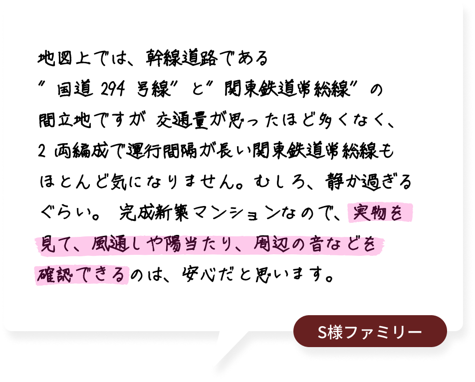 〈コンフィール守谷本町〉は実物を見て、風通しや陽当たりなども確認できるので、